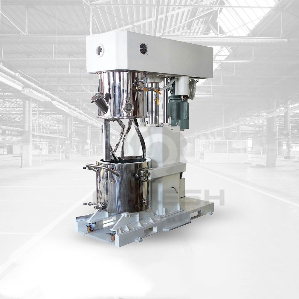 雙行星混合機的攪拌槳葉,在公轉(zhuǎn)的同時也自轉(zhuǎn),使罐體內(nèi)物料上下及四周循環(huán)運動,從而可在很短時間內(nèi)達到混合(混煉)效果。罐體內(nèi)壁為大型立車精加工,再經(jīng)大型拋光機自動拋光,確保行星箱上的活動刮刀在旋轉(zhuǎn)時,把罐體內(nèi)壁上的物料完全刮掉。該機特別適合從粉體到高黏度、高密度的物料溶解、混合、混煉、反應(yīng)工藝。廣泛應(yīng)用于電池、有機硅膠、油墨、染料、粘膠劑、高粘度涂料等化工產(chǎn)品。